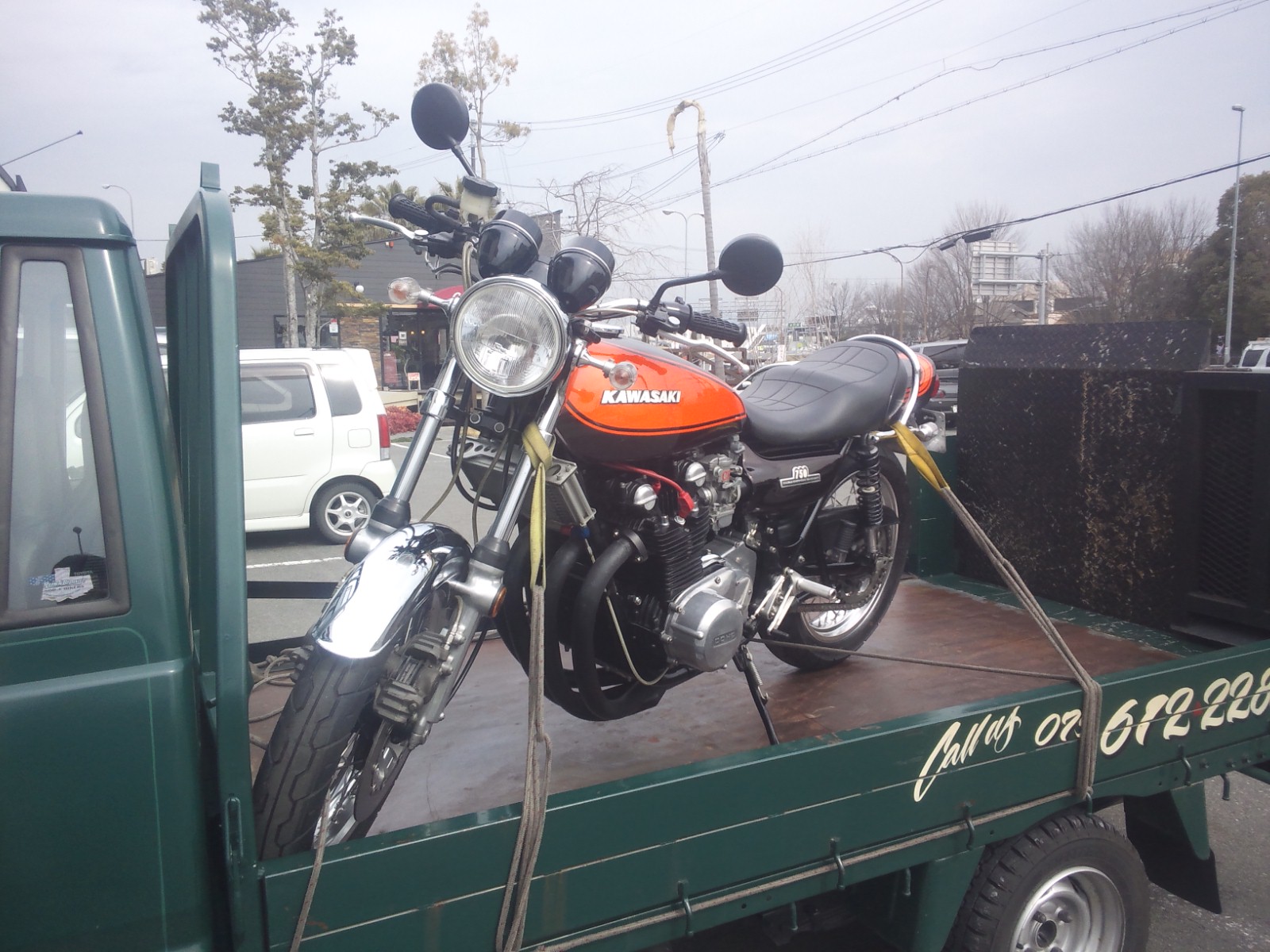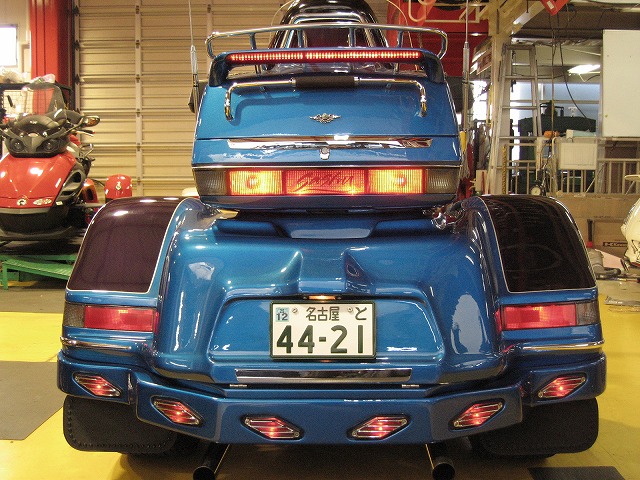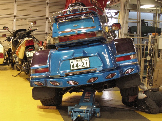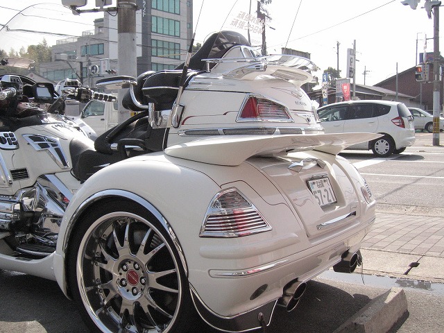 2輪側の前後タイヤも自動車用の偏平タイヤにカスタムされており