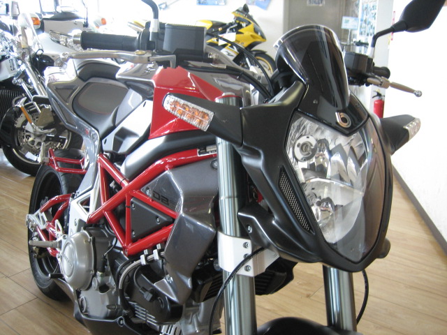 流麗な赤いトラス・フレーム、縦2灯の異形ヘッドライトから