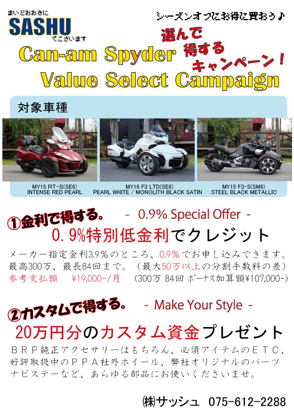 BRP純正アクセサリーはもちろん、スパイダー必須アイテムETC車載器、
