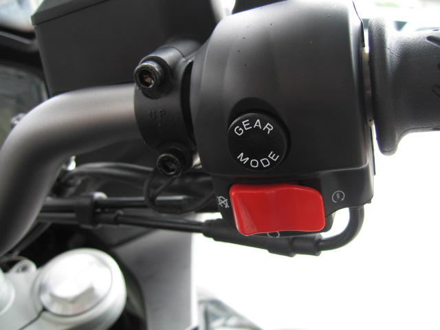 シフトチェンジは左のスイッチボックス横についている+/-のスイッチか足元のチェンジペダルで操作可能です。