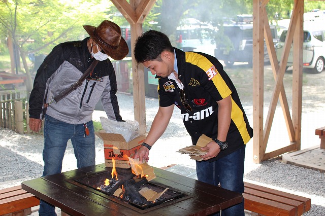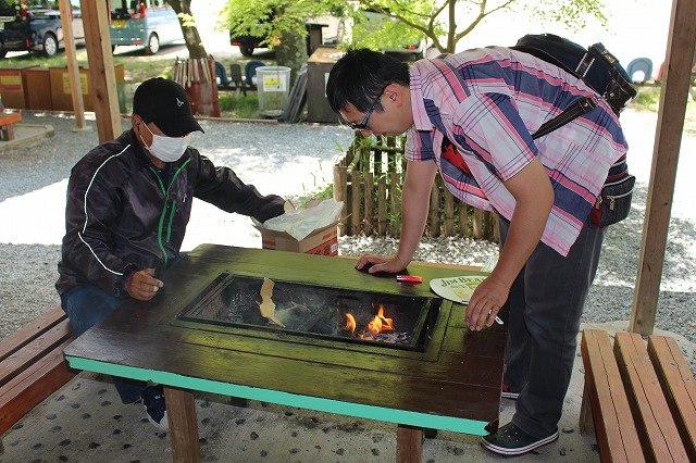 早速、各テーブルごとに、火をおこします。