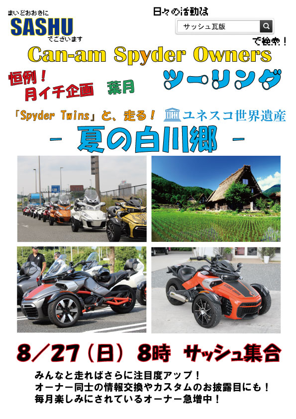 ツーリング、イベント、新製品生情報、裏ネタ!? 満載でお届けするサッシュ・ブログ