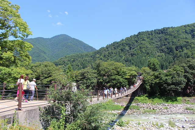 食後に吊り橋『であい橋』を渡って、いよいよ集落へ。