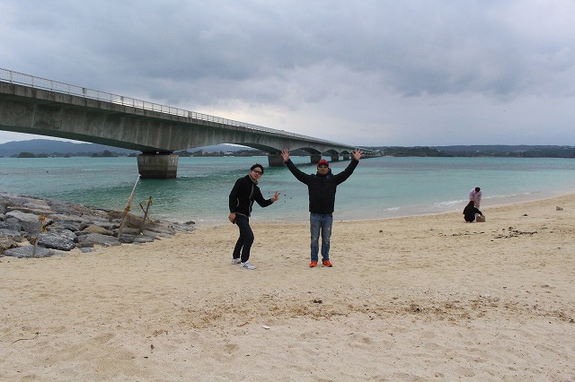 古宇利島大橋と記念撮影。