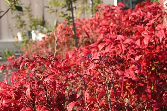 駐車場の木々も真っ赤に色づきました。