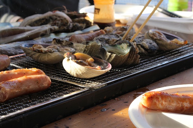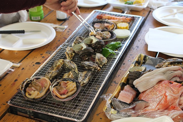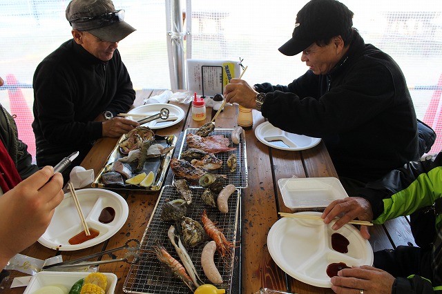お昼は予定変更、海鮮BBQ!かなり山盛り!