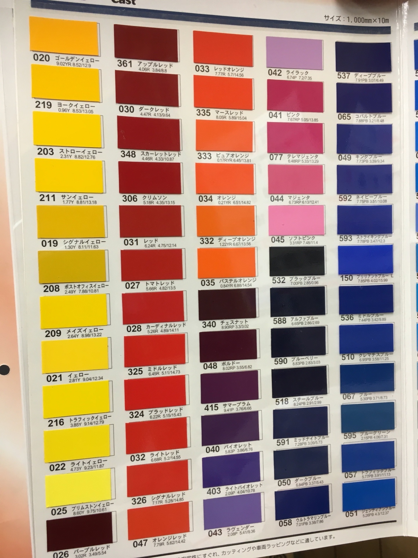 豊富な色見本(一部抜粋)