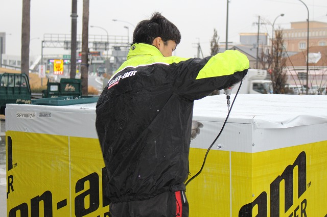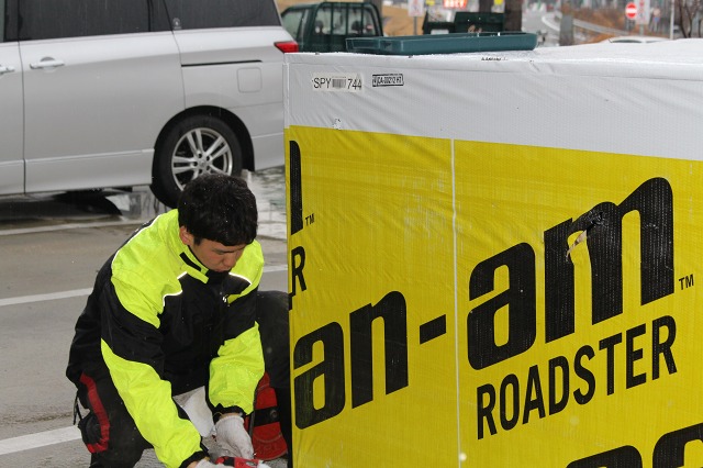 みぞれまじりの雨の中、正装して、開梱に入ります。