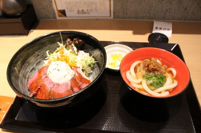 名物 ローストビーフ丼。おまけの小うどん、コシが凄い!!!