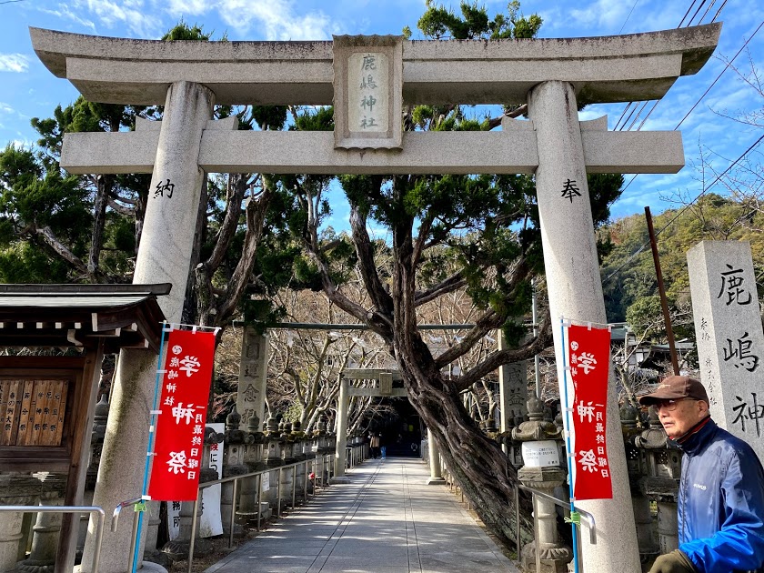 高砂市の鹿嶋神社の駐車場からあるいて向かいます。