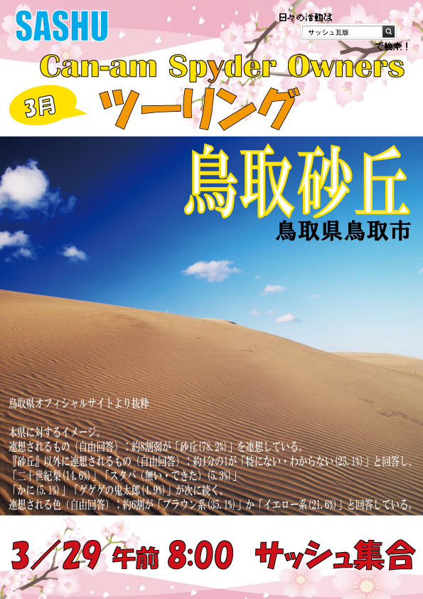 3月29日(日)の定例カンナムツーリングの詳細をお知らせします。