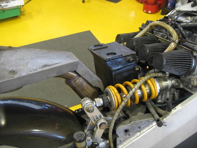 空いたスペースにバッテリーを移設してあり、OILキャッチタンク一体型の