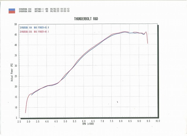 ヨシムラのST-2カムシャフトも同時に組み込みました。結果46馬力でした。