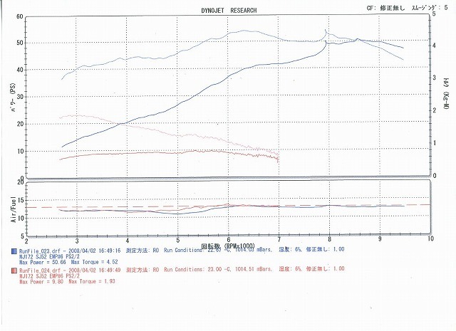 ちょっとグラフが変になってしまいましたが馬力が10%程増えたので