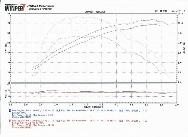 セッティング前と比べて全域で馬力、トルク共、増えました。