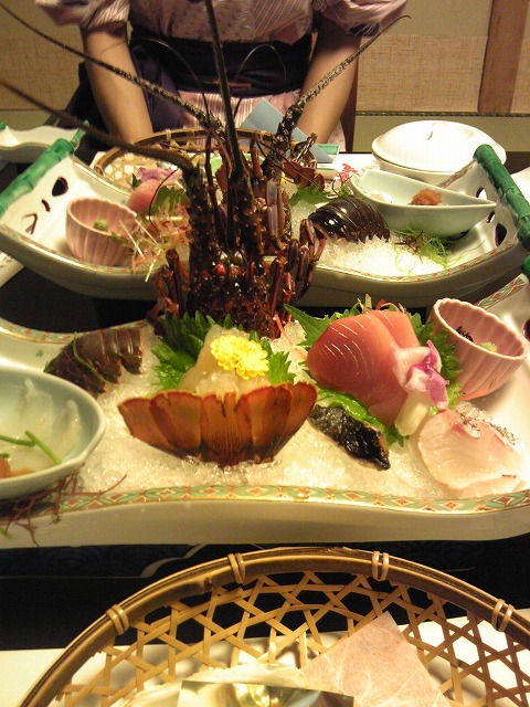 ここでは、伊勢海老、真珠貝、安乗フグ、牡蠣、鯛のアラ煮等いただきました。