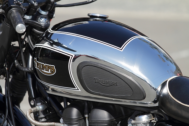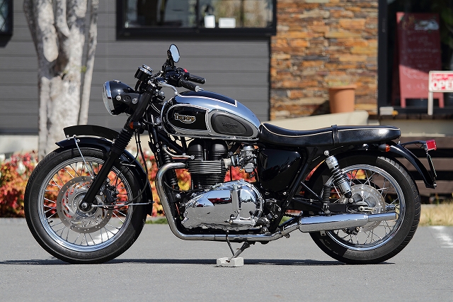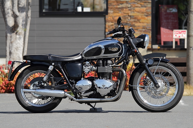 こちらのボンネビル・トライアンフT100、現在展示中です。