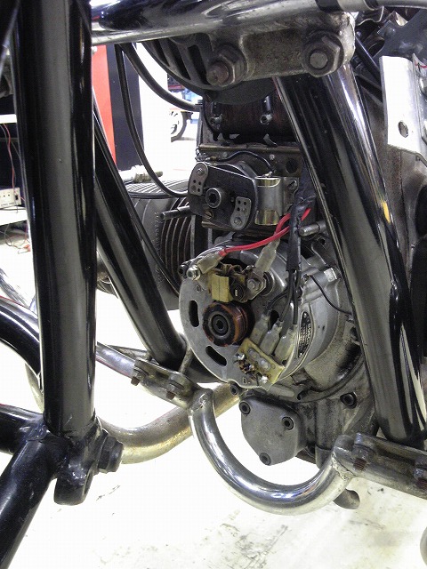 最近のバイクでは見かけないフラマグポイント点火です。