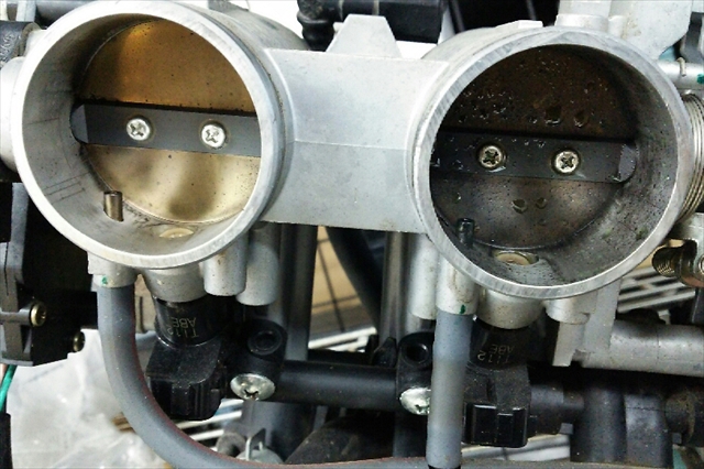スロットルですが、3番だけ冷却水で汚れていました。
