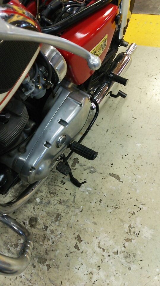 この車両はブレーキペダルとチェンジペダルが逆です。