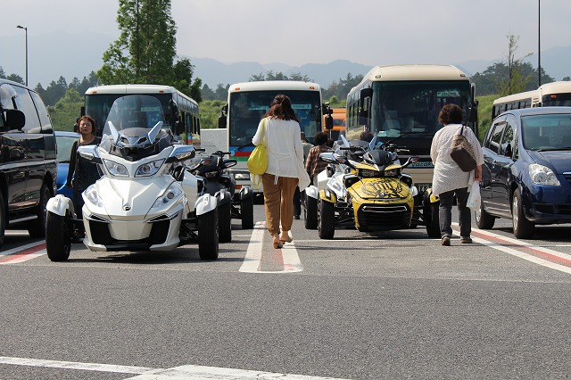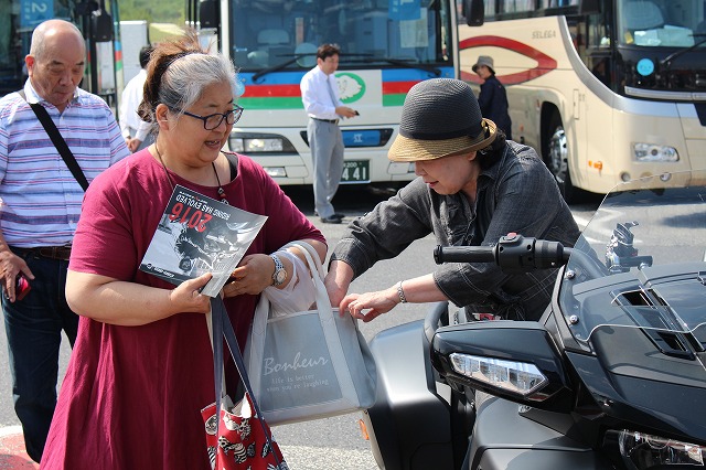後方の観光バスから降りてきた土山マダム(写真中央)